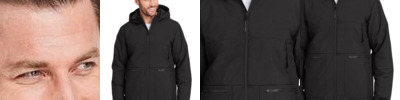Reflective tab with drop logo folded over left sleeve hem and attached with two bright green bartacks above side splits