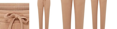 - Ribbed-knit waistband with external round drawcord and silicone tips