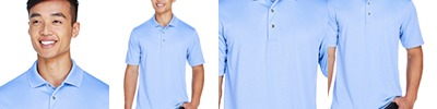 6.3 oz./yd2 / 215 gsm, 100% combed cotton pique with EZ Cool wicking technology; no-pill, no-fade, no-shrink, no-curl collar, no-wrinkle performance; Active fit; Matching flat-knit collar; Three-button placket;