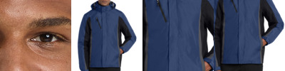 This fully waterproof, wind resistant and tech-savvy jacket delivers complete protection without the bulk. Made with a polyester woven shell bonded to polyester microfleece, this color blocked soft shell is great for cold days. Movement is a breeze with four-way stretch fabric. Plus, the interior MP3 pocket keeps the tunes coming in this sleek, urban jacket.