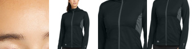 A boldly striped inner collar and reverse coil zipper give this cover-up a modern edge. Of course, it also performs with Dri-FIT moisture management technology. The design features a rib knit collar and cuffs and an open hem. Tailored for a feminine fit with shaped sleeve cuffs and a drop tail hem. The contrast Swoosh design trademark embroidered on the left hem. Made of 8.3-ounce, 100% Dri-FIT polyester.